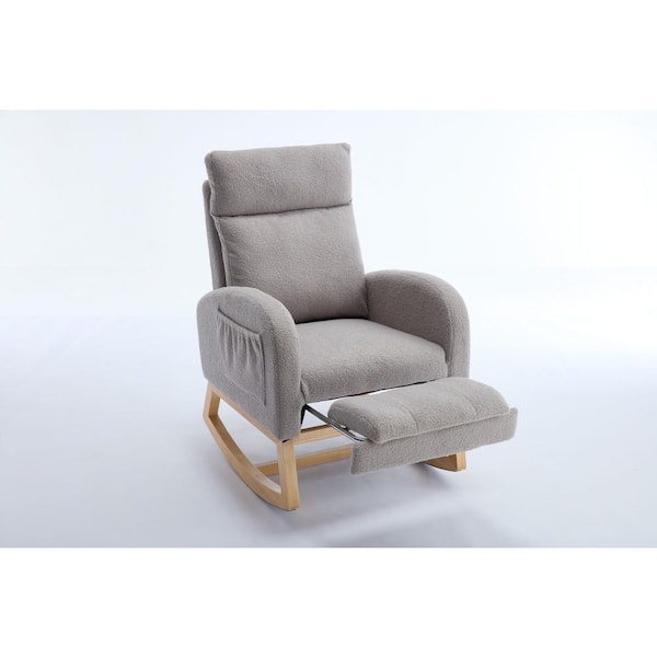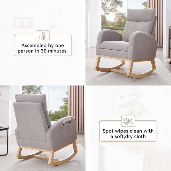 Brown Wood Outdoor Rocking Chair with Gray Cushion, High Backrest