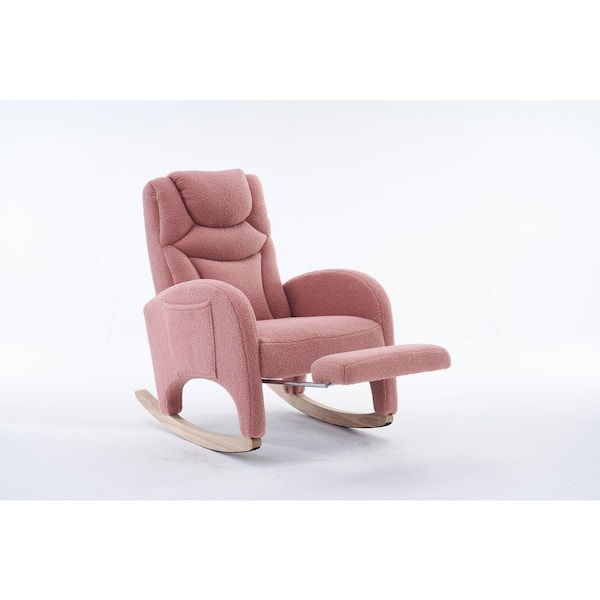 Brown Wood Outdoor Rocking Chair with Pink Cushion, High Backrest