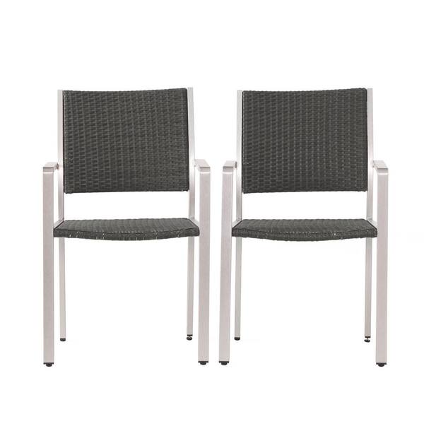 Gray Metal Modern Outdoor Dining Chair with Wicker Seats Set of 2