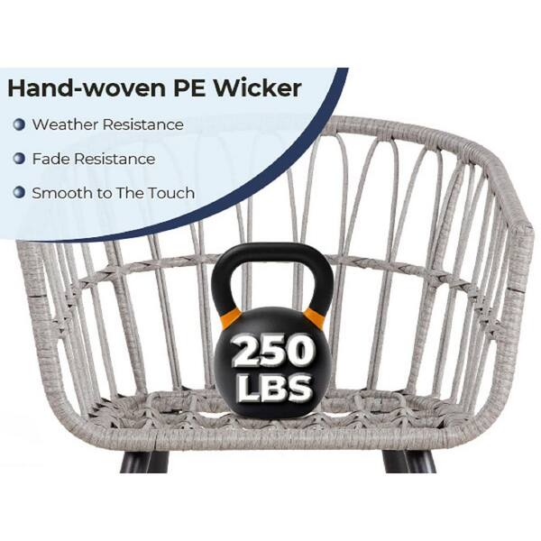 Gray Wicker Outdoor Lounge Chair with Blue Cushions (5-Pack) Rattan Round Table