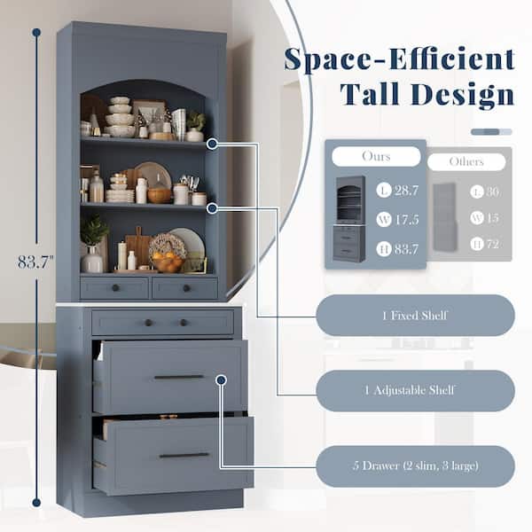 Gray Wood 28.7 in. Sideboard Buffet Table Kitchen Island Pantry Organizers with Adjustable Shelves and Drawer