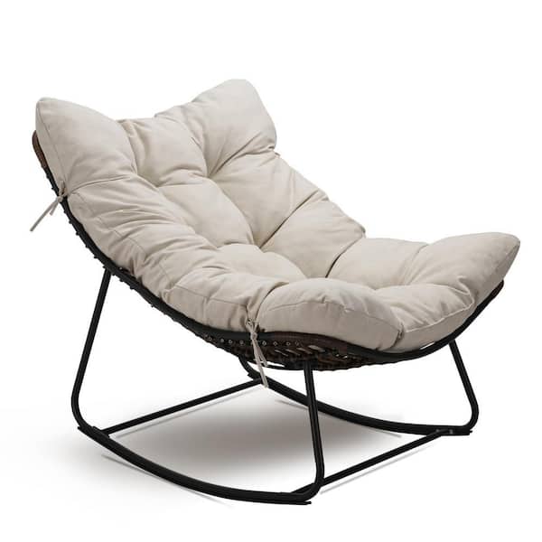Rattan Rope 36 in. W Metal Outdoor Rocking Chair with Light Gray Olefin Cushion