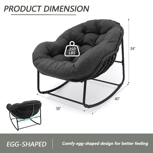 Rattan Rope 37 in. W Metal Outdoor Rocking Chair with Dark Gray Olefin Cushion
