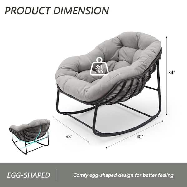 Rattan Rope 37 in. W Metal Outdoor Rocking Chair with Light Gray Olefin Cushion