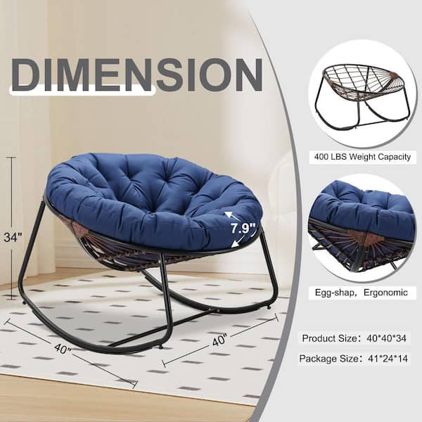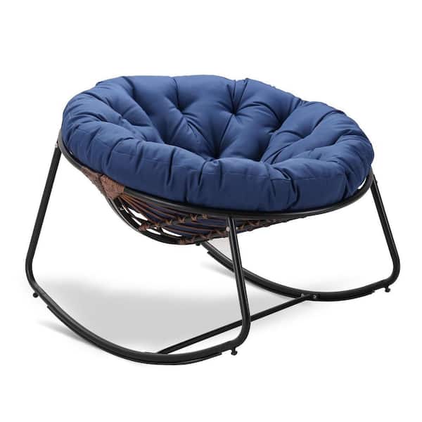 Rattan Rope Dark Gray Frame 40 in. W Metal Outdoor Rocking Chair with Navy Blue Olefin Cushion