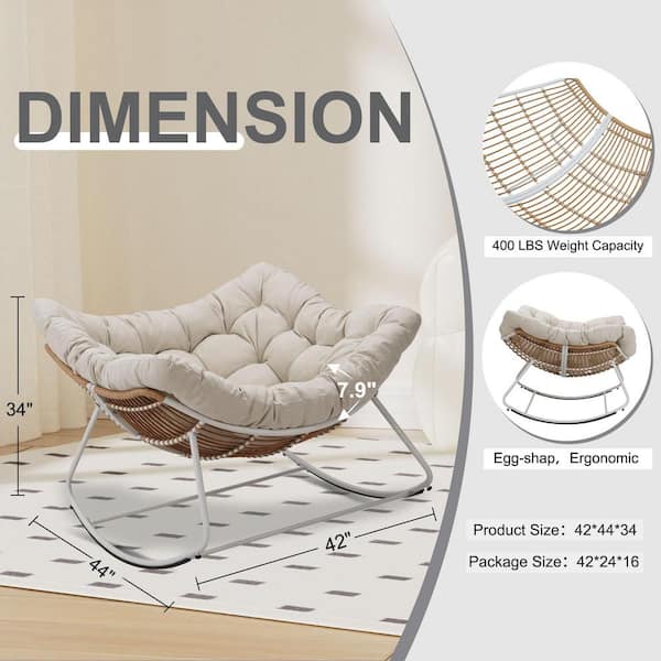 Rattan Rope White Frame 42 in. W Metal Outdoor Rocking Chair with Beige Olefin Cushion