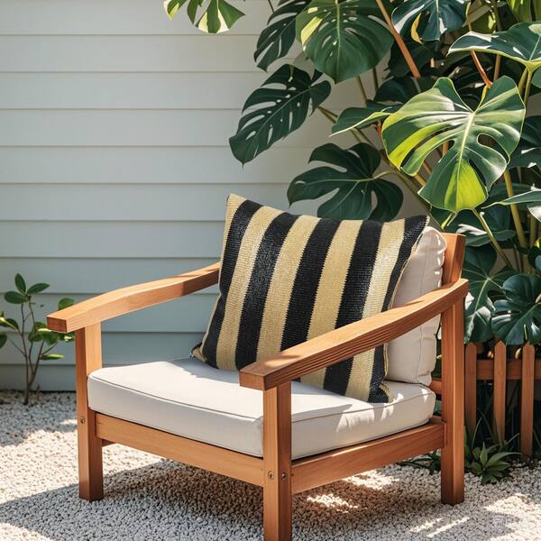 Simulated Straw Weaving 18. in Square Outdoor /Indoor Throw Pillows with Inserts Yellow and Black Stripe (2-Pack)
