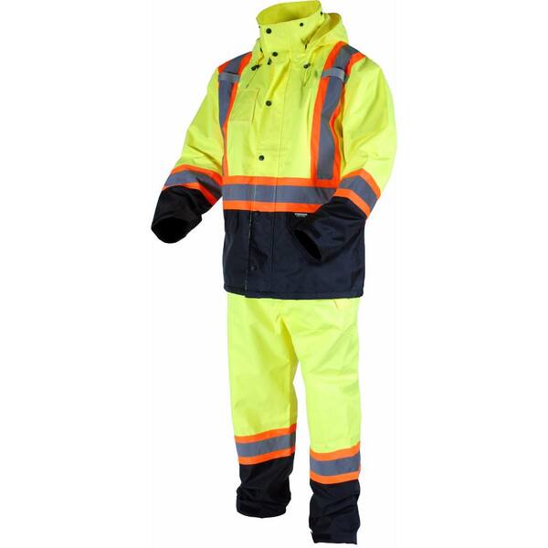 Men's X-Large Yellow High-Visibility Reflective Safety Rain Suit