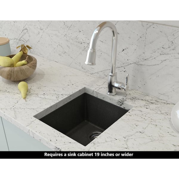 Hyperion Granite Composite 16 in. Single Hole Drop-in/Undermount Single Bowl Bar Sink in Metallic Black