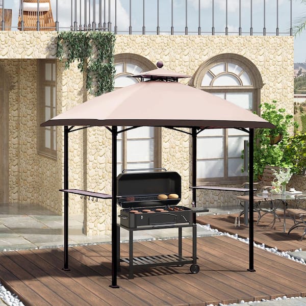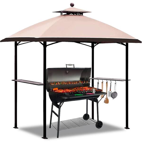 5 ft. x 8 ft. Grill Outdoor Patio Grill Gzebos with Ventilation Double Arc Top, Beige