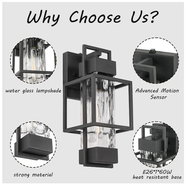 Textured Black Clear Seedy Crystal not Motion Sensing Outdoor Hardwired Wall Lantern Sconce with LED