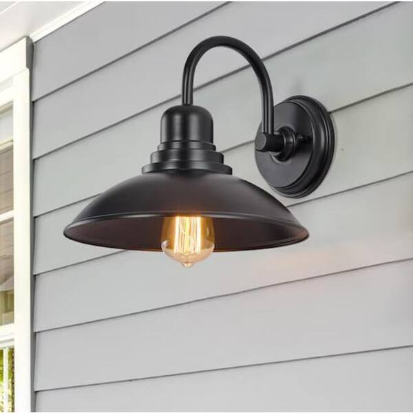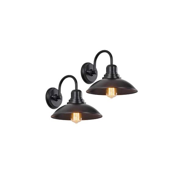 Textured Black E26 Hardwired Wet Rated Wall Sconce with Metal Shade (Set of 2)