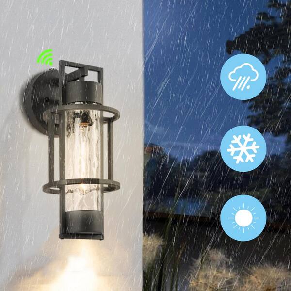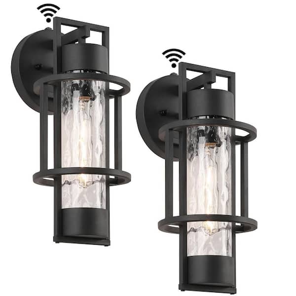 Textured Black Not Motion Sensing Dusk to Dawn Outdoor Hardwired Wall Lantern Sconce with No Bulbs Included (2-Pack)