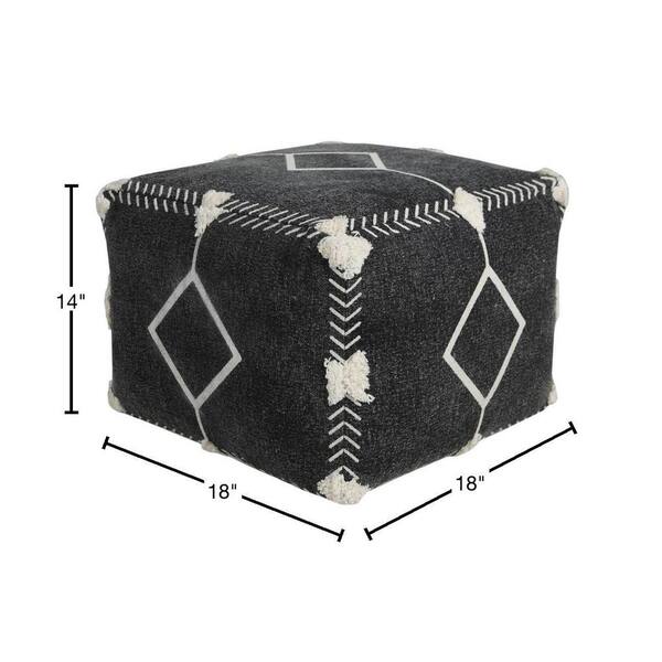 Textured Black / White 18 in. x 18 in. x 14 in. Diamond Dash Pouf Ottoman