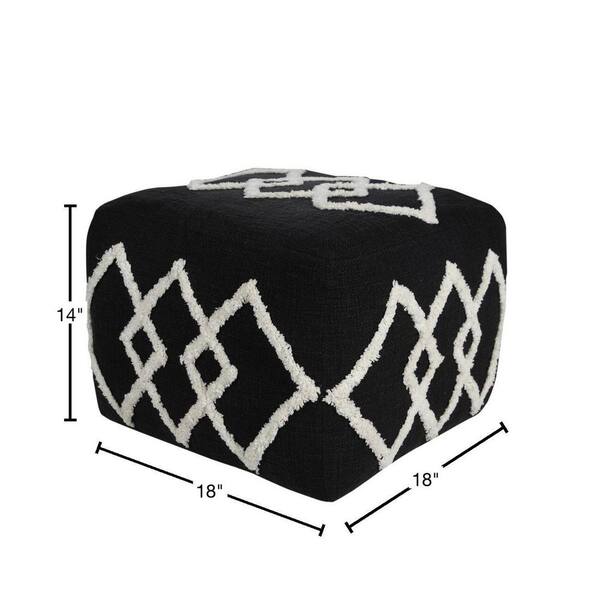 Textured Black / White 18 in. x 18 in. x 14 in. Overlapping Diamonds Pouf Ottoman