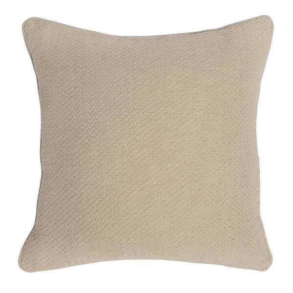 Textured Cotton 22 in. x 22 in. Square Solid Natural Decorative Pillow
