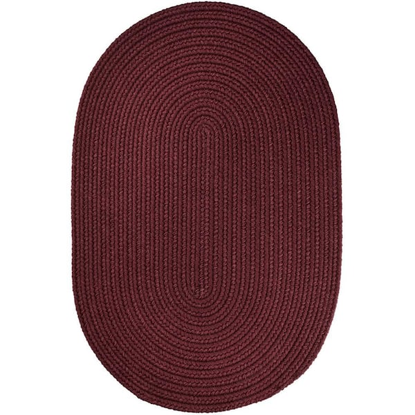 Texturized Solid Burgundy Poly 2 ft. x 3 ft. Oval Braided Area Rug