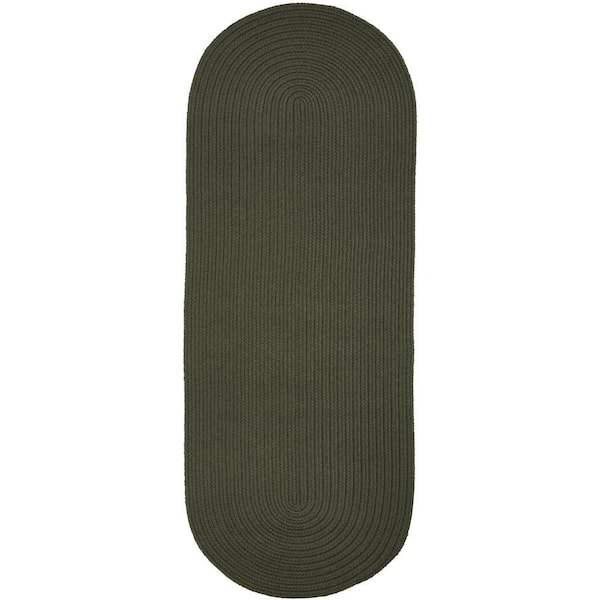 Texturized Solid Dark Sage Poly 2 ft. x 6 ft. Braided Runner Rug