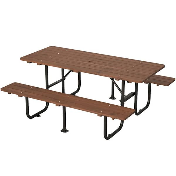 72 in. Brown Rectangle Steel Frame Picnic Table Set Seats 4-6 People with Umbrella Hole