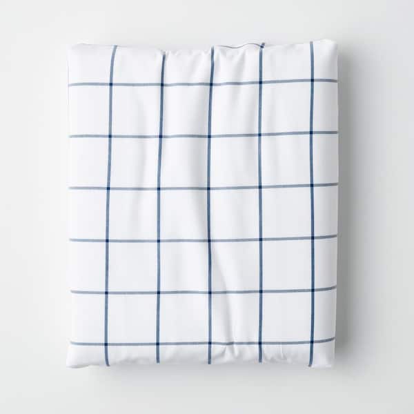 Block Plaid Navy 200 Thread Count Yarn-Dyed Cotton Percale Twin Fitted Sheet