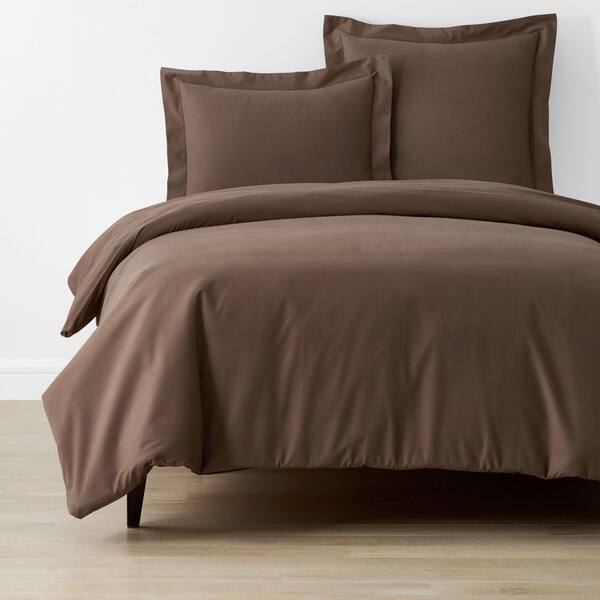 Brushed Cotton Coffee Solid Twin/Twin XL Cotton Duvet Cover