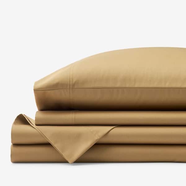 Company Cotton 3-Piece Gold Solid 300-Thread Count Wrinkle-Free Sateen Twin XL Sheet Set