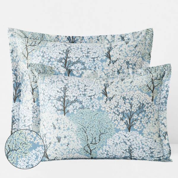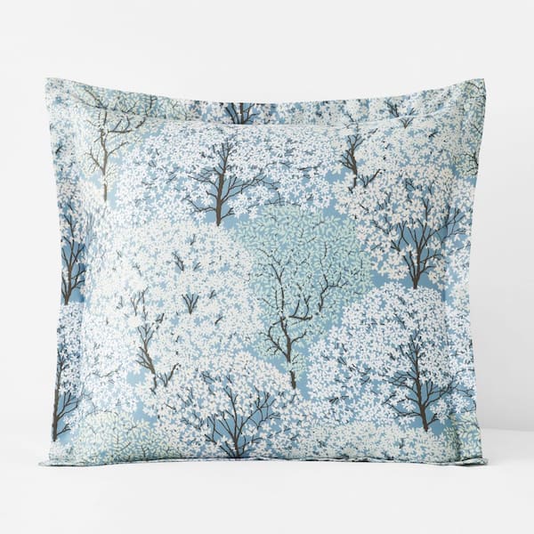 Company Cotton Blooming Trees Gray/Green Sateen Euro Sham