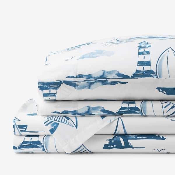 Company Cotton Boats And Lighthouse Navy Cotton Percale King Sheet Set