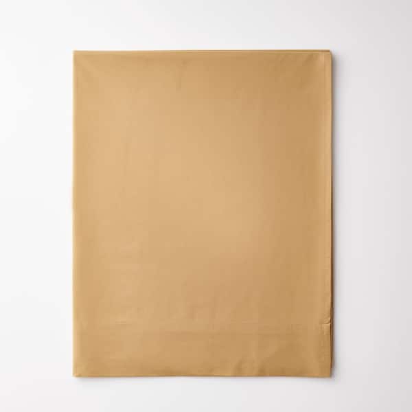 Company Cotton Butterscotch Solid 300-Thread Count Cotton Percale Oversized Queen Deep Pocket Flat Sheet