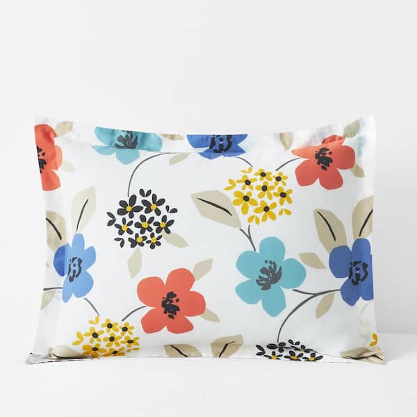Company Cotton Claudia Floral White Multi Cotton Percale Standard Sham