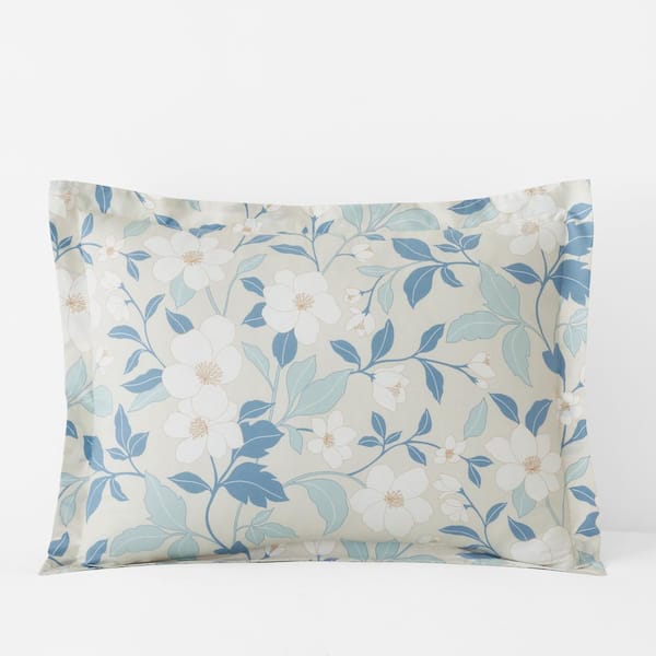 Company Cotton Clemencia Floral Pale Blue Cotton Percale Standard Sham
