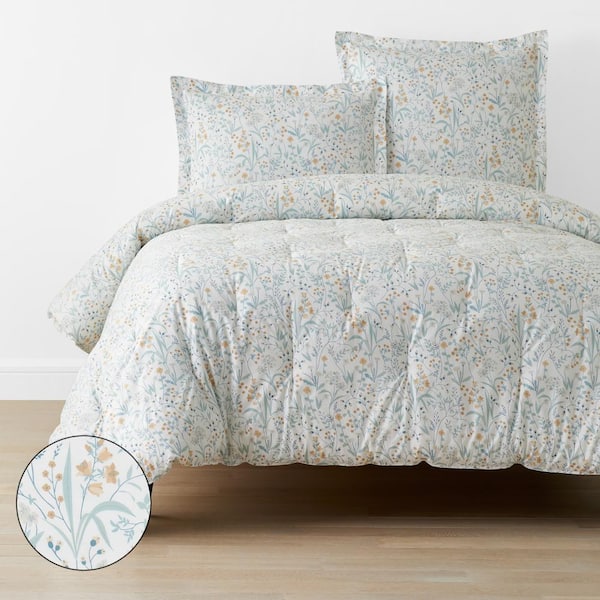 Company Cotton Clemencia Mini Floral Pale Blue Cotton Percale Comforter