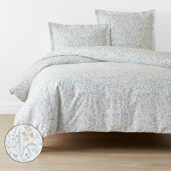 Company Cotton Clemencia Mini Floral Pale Blue King Cotton Percale Duvet Cover