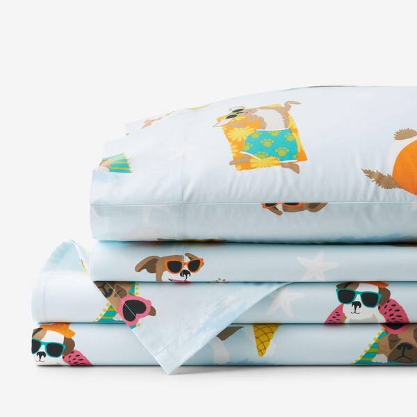 Company Cotton Cool Dogs Light Blue Multi Cotton Percale Queen Sheet Set