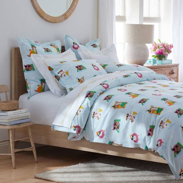 Company Cotton Cool Dogs Light Blue Multi King Cotton Percale Duvet Cover