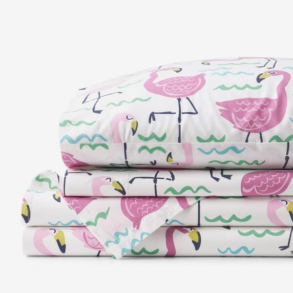 Company Cotton Dashing Flamingos Pink Multi Cotton Percale Twin XL Sheet Set