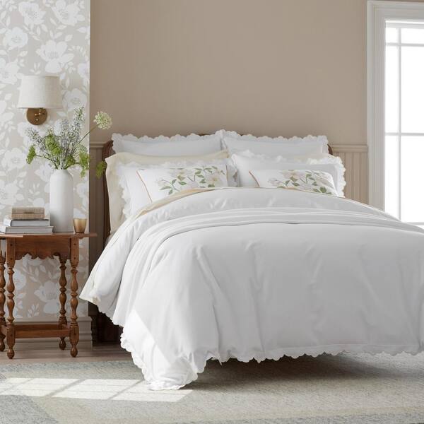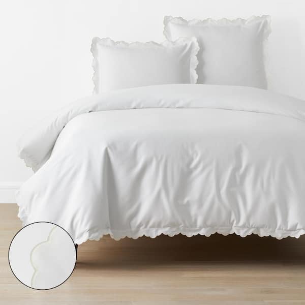 Company Cotton Embroidered Scallop Ivory Twin/Twin XL Sateen Duvet Cover