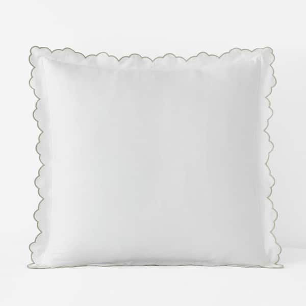 Company Cotton Embroidered Scallop Light Sage Euro Sateen Sham