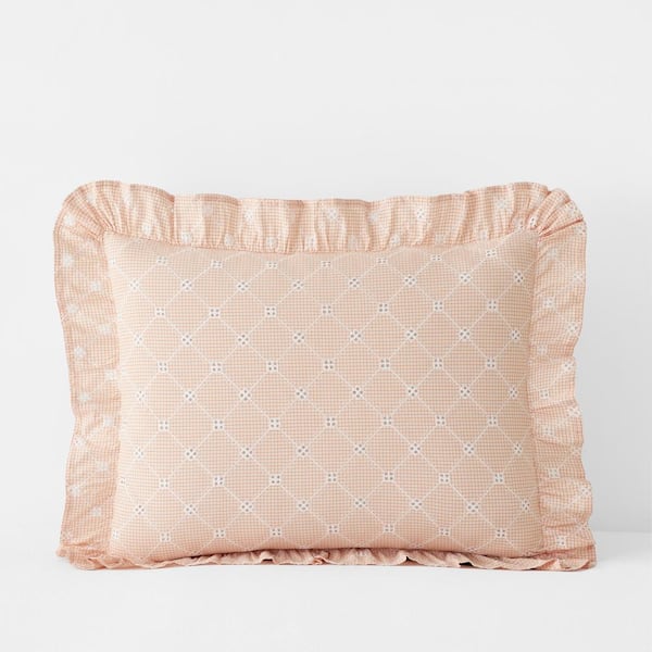 Company Cotton Eyelet Ruffle Yarn-Dyed Peach King Cotton Percale Sham