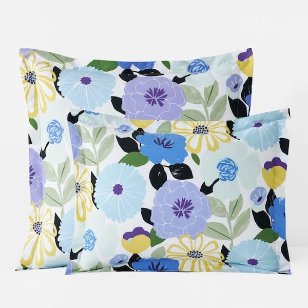 Company Cotton Floral Harmony White Multi Cotton Percale Euro Sham