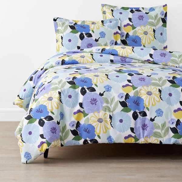 Company Cotton Floral Harmony White Multi Full Cotton Percale Duvet Cover