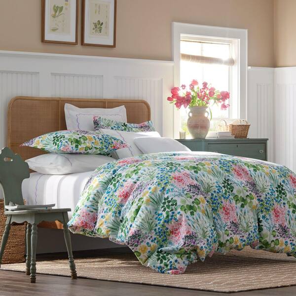 Company Cotton Flower Garden Ivory Multi Cotton Percale King Fitted Sheet