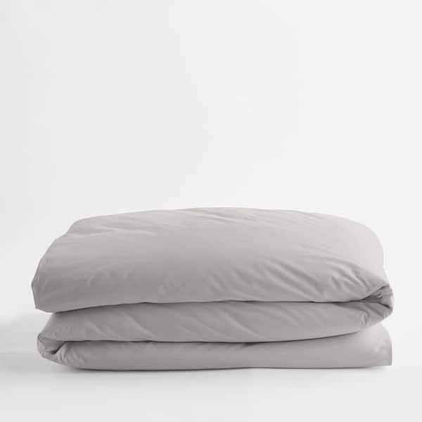 Company Cotton Gray Smoke Solid 300-Thread Count Cotton Percale Full Duvet Cover