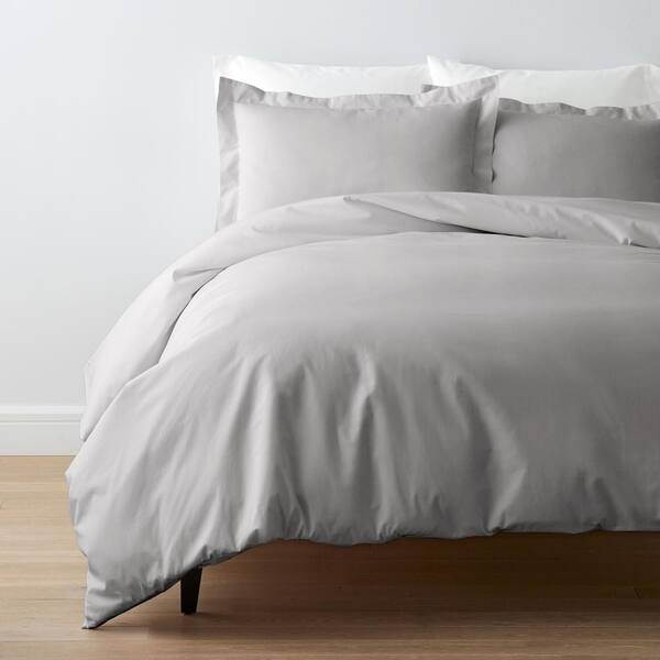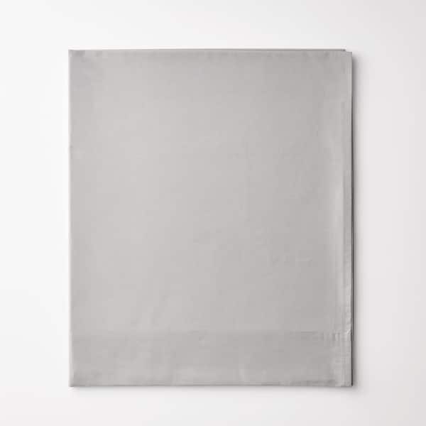 Company Cotton Gray Smoke Solid 300-Thread Count Cotton Percale Queen Flat Sheet