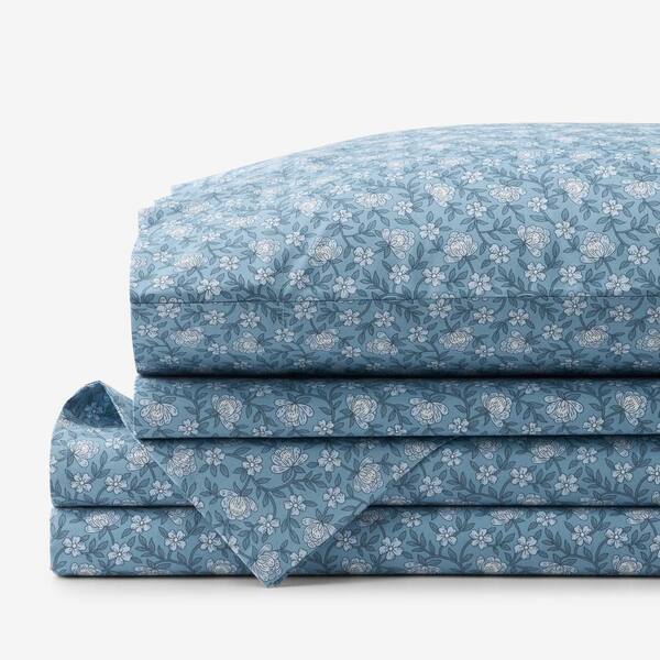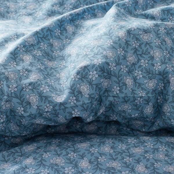 Company Cotton Mini Floral Vine Blue Cotton Percale Twin Sheet Set