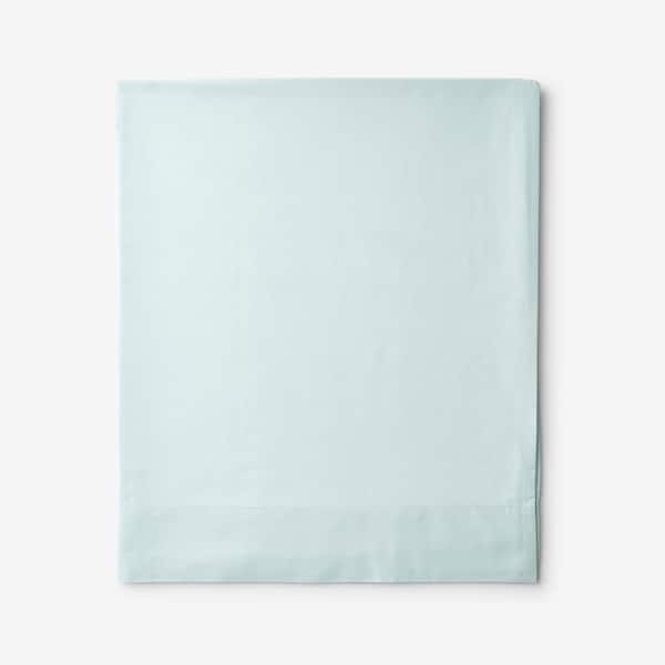 Company Cotton Pale Blue Solid 300-Thread Count Cotton Percale King Deep Pocket Flat Sheet