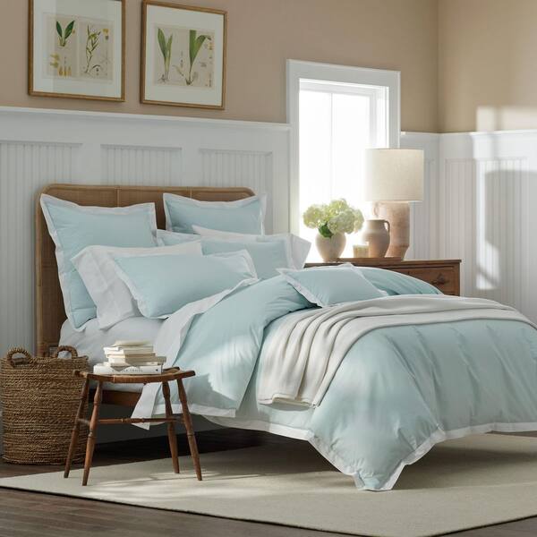 Company Cotton Pale Blue Solid Border Trim Twin Cotton Percale Duvet Cover