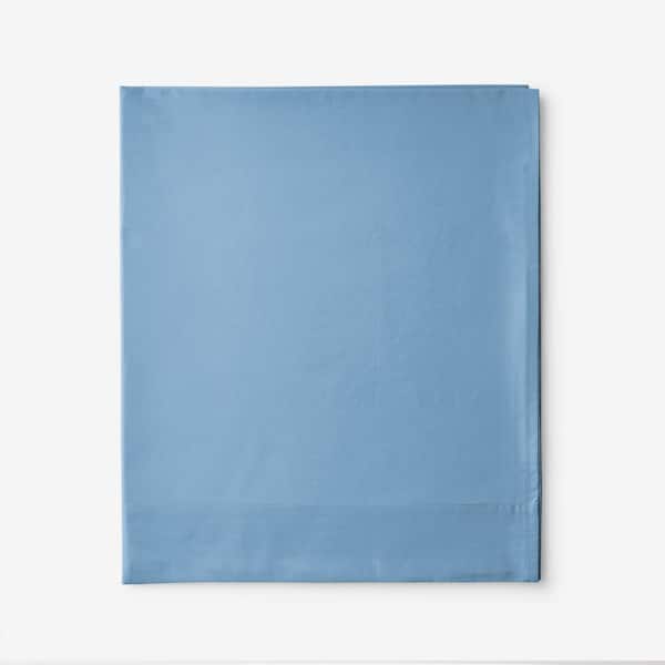 Company Cotton Percale Porcelain Blue Solid 300-Thread Count California King Deep Pocket Flat Sheet