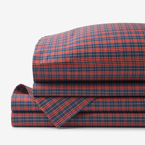 Company Cotton Red/Navy Christmas Plaid Cotton Percale Full Sheet Set