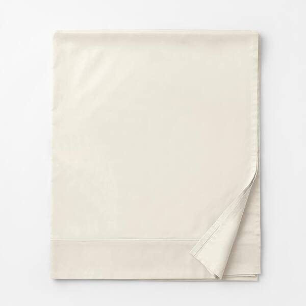 Company Cotton Sateen Extra Deep Solid Ivory Cotton California King 350 Thread Count Flat Sheet
